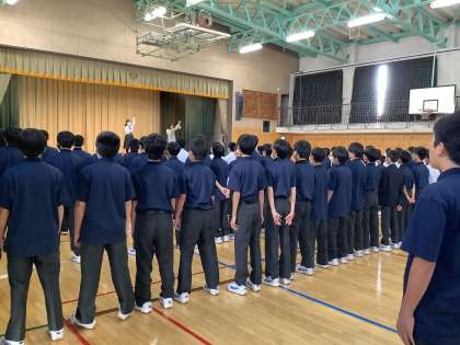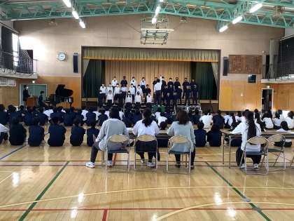 今日の5時間目に、1学年全体で合唱コンクールのリハーサルを行いました。