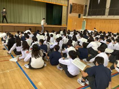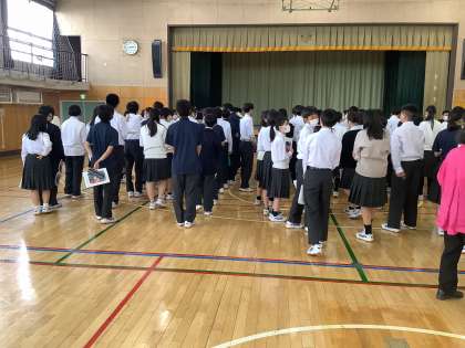 31日の6時間目に、体育館で移動教室の事前集会を行いました。