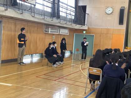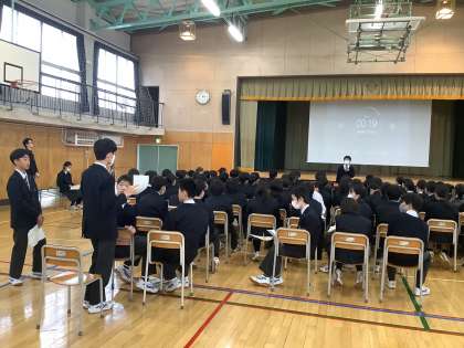 本日の6時間目に、各クラスの代表者(バトラー)が集まり、自分のおすすめの本を紹介するビブリオバトルが行われました。皆真剣に紹介を聞き、オススメされた本に興味を持っていました。投票によって、後日学年代表が決定します。