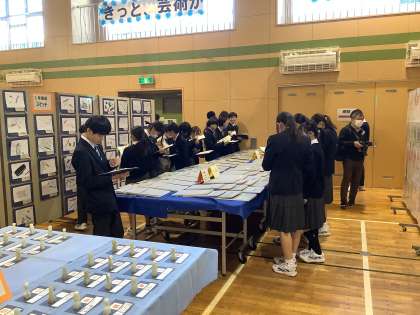 12日(金)の6時間目に、学年で展示されている作品を鑑賞してきました。