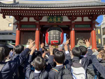 浅草寺は元は天台宗ですが、1950年から聖観音宗となったお寺なんだそうです。雷門も有名ですが、実は反対側はこのようになっています。校外学習も終盤となり、見学地も残りわずかとなりましたが、引き続きしっかりと学んでいきます!