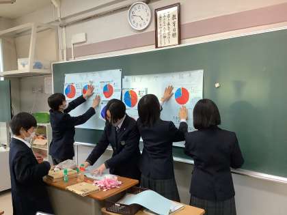 各班でPowerPointに学習した内容をまとめ、学習したことや体験したことをクラスで発表をしました。また、実行委員を中心に校外学習事後アンケートの結果をまとめ、廊下に掲示しました。学習したことを、これからの学校生活に活かしていきましょう。