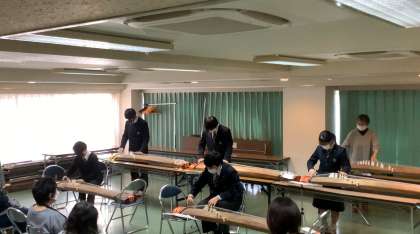 放課後に保護者の方々や先輩、先生たちをお招きして、箏の演奏会を行いました。