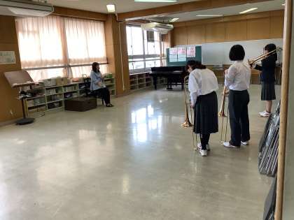 吹奏楽部では,1年生のパート(楽器)を決めるためのオーディションを行い,パート決めを行いました。2,3年生の優しい指導のもと,短期間でしっかりと音が出るようになっていて,素晴らしかったです。どのパートになったとしても,前向きに取り組めると良いですね。
