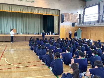 本日の3、4時間目に、第2学年で学年練習を行いました。準備体操からリレー、大縄の隊形確認、大縄の練習を行いました。各クラスで大縄の練習をしたときは、みんなで案を出し合いながら、多く飛ぶ方法を考えていました。