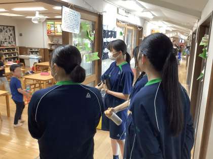 保育園には3年生4名が訪問しました。今回の写真は撮れませんでしたが、その代わりに、同じ部員が以前に交流した時の写真を載せています。