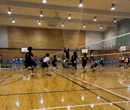 本校の初戦は代々木中学校。序盤はリードを許したものの、チームが踏ん張り、第一セットを先取!第二セットは苦しい展開が続きデュースの結果、セットを落としますが、第三セットは25-12としっかり立て直し、勝利しました!続く三田国際中、青山学院中にも勝利し、本校はBゾーンの一位として、来週はブロック大会の決勝トーナメントに進みます!