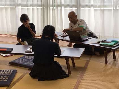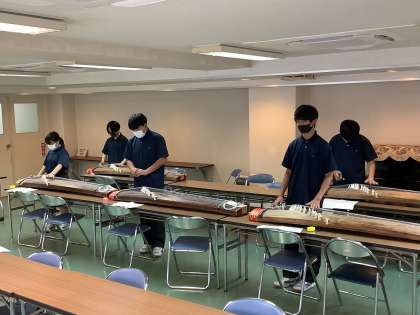1年生と2年生が半分ずつ時間を使い、久しぶりに箏の稽古をしました。