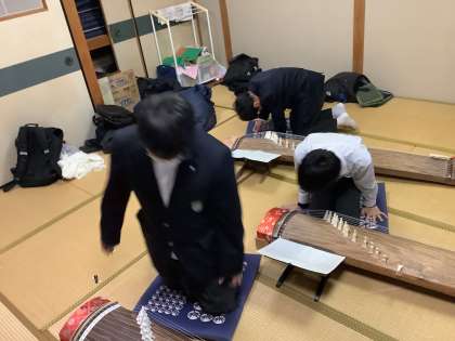 1年生部員は慣れない正座と譜面に苦労しながらも、一生懸命練習しています。