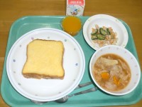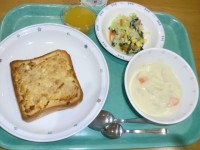 ●本日の献立●きな粉豆乳トースト 牛乳 鶏肉とじゃがいものケチャップ炒め 野菜と...