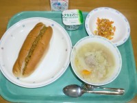 ●本日の献立●セルフウィンナーサンド 牛乳 白菜の米粉クリーム煮 にんじんサラダ...