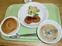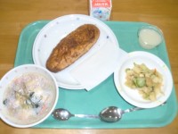 ●本日の献立●ミルクパン 牛乳 ラザニア風グラタン フレンチサラダ 野菜スープ●...