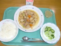 ●本日の献立●大根カレー 牛乳 キャベツのごまドレッシング くだもの●主な給食食...