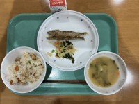 ⚫︎本日の献立⚫︎たけのこごはん 牛乳 ししゃものからあげ 春野菜とわかめのサラ...