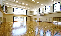 体育館と扉一枚を隔てて格技室があります。格技はもちろんのこと、球技や集会にも利用されています。