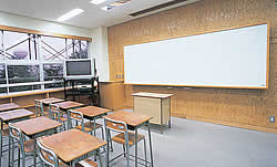大型画面でVTRやDVDの再生が可能。映画・ビデオ・音楽鑑賞など、日々の授業をはじめ総合的な学習の時間などに使われます。