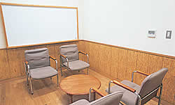写真は第二相談室。第一相談室ではスクールカウンセラーとの相談ができます。三宿中学校では生徒との相談活動に積極的に取り組み、心の通う関係を作ります。