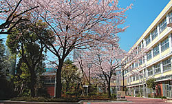 中庭側から撮影した校舎です。校門をくぐると季節の草花や木々が四季折々の表情を見せてくれます。