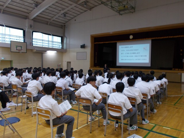 2年生では、10月に実施される職場体験学習に向けて、マナー講座が行われました。