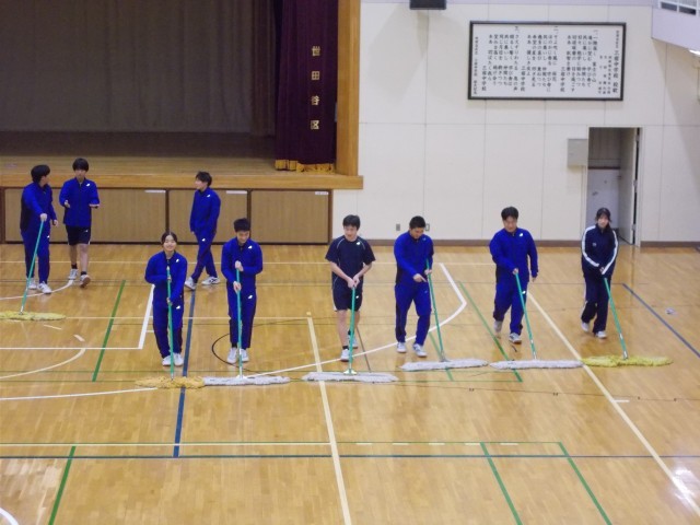 本日、学期末の大掃除が行われました。雨のため、外の掃除はできませんでしたが、2学期に毎日使った教室や特別教室など協力してきれいに掃除していました。大掃除後には、美化委員が教室のワックスがけを行いました。