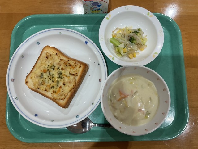 ツナポテトースト 牛乳 白菜と魚介のシチュー ブロッコリーのサラダ