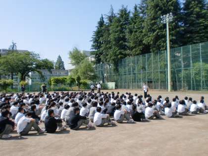 今回の避難は私語なく整然と行われましたが、階段を駆け降りる生徒がいました。避難の鉄則は素早くですが、階段の駆け降りはとても危険です、将棋倒しになってしまうと大変です。これからは素早く安全に避難しましょう。