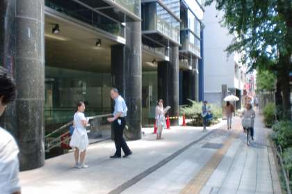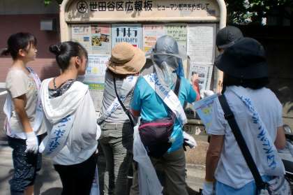 これは地域の広報板の落書き消しを行っています。右側の写真は池尻大橋駅でのポイ捨て禁止の啓発活動を行っているところです。