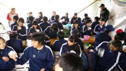 バター作りは軽快な音楽に合わせて瓶を振りますが、