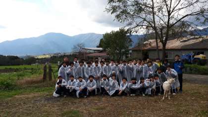 A組は扇屋牧場で牧場体験。 最後までレインコートを着ての活動でした。