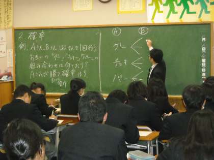 これは、都立目黒高校の荒井勇治先生による数学(樹形図 確立)の授業です。