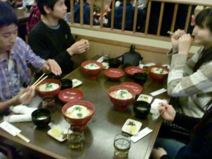 昼食は大鳥居前の「天金」。名物「鎌倉丼」は海老の天ぷらを卵でとじたものです。