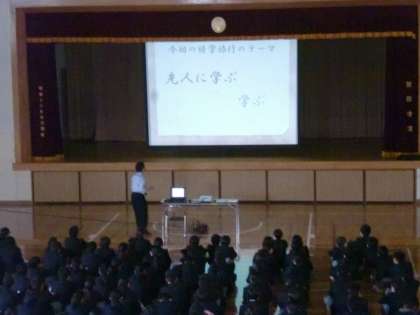 3年生は修学旅行の事前学習が始まっています。 今回は体育館で修学旅行の概要説明を行いました。