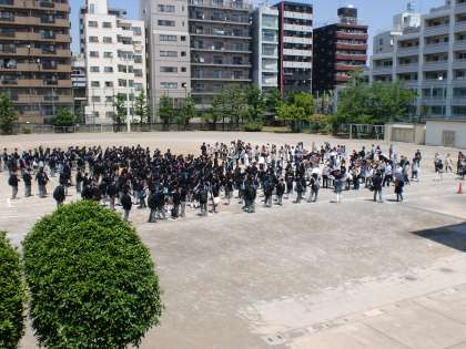 今年は晴天に恵まれ校庭で行われました。