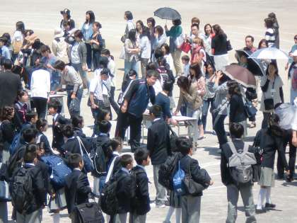 1年目は各教室で、2年目は雨のため体育館で、