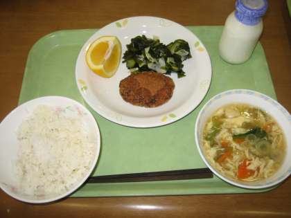 具に工夫をしてふわりとしたメンチに仕上がりました。人気の献立です。