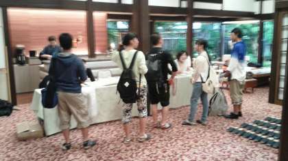 朝9時から夕方5時まで、班行動が無事に終了しました。晴天に恵まれましたが、最後に夕立に見舞われてしまいました。本日の宿泊は、由緒ある聖護院御殿荘です。