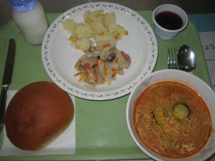 今日はナイフとフォークを使い、お肉を食べるようにしてみました。