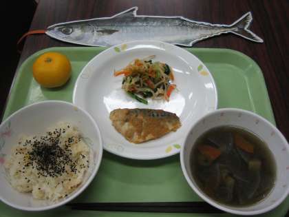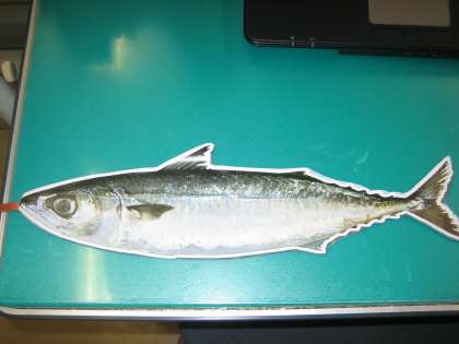 サバの実物大写真を見てもらい、どんな魚か知ってもらいました。