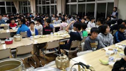 園庭で開園式、入浴、そして皆の大好きなカレーの夕食。