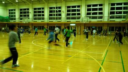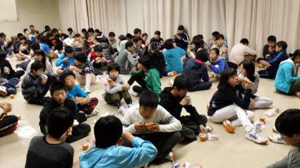 体育館は寒いので暖房のきいたロビーでジャムパン、牛乳、オレンジゼリーをいただきました。