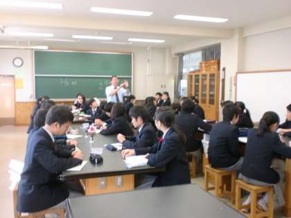 11月27日の5時間目の2年生は都立高校の先生による訪問授業。