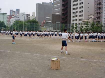 ★5月9日(金)本日は朝練習2日目です。各クラスとも、三宿競技(大縄跳び)などの練習に励んでいます。昨年度の反省を生かし、大縄を回す生徒は腰を保護するベルトを着用しています。全体練習を1・2時間目に実施します