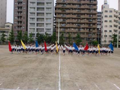 体育大会 全体練習 公開日 2015/05/09 更新日 2015/05/09 学校日記 最初で最後の全体練習では開会式・入場行進・プログラム1番の準備体操 三宿競技の入退場を行いました。 いいね(0)
