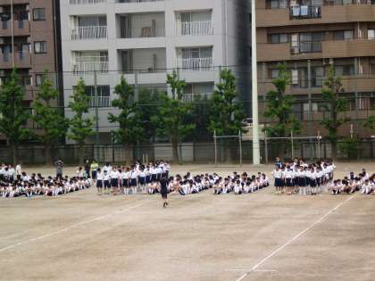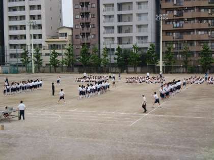 体育大会 三宿競技入退場 公開日 2015/05/09 更新日 2015/05/09 学校日記 三宿競技の入退場は 1 各団の場所から競技場所へ移動 2 大縄を準備 3 3分間の競技 4 結果発表「座って待機」 5 各団の場所へ戻る です。 団ごとの応援も素晴らしいものです。 いいね(0)