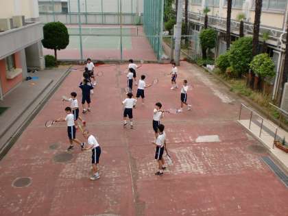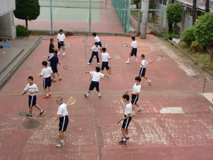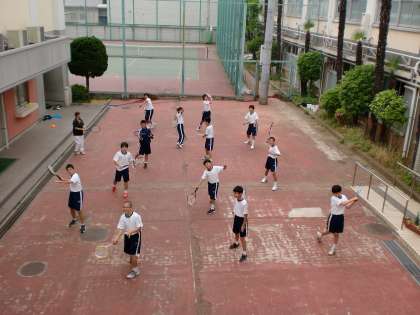 土曜の放課後各部活の活動では1年生が入部し、 基本をしっかり教えていました。
