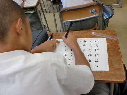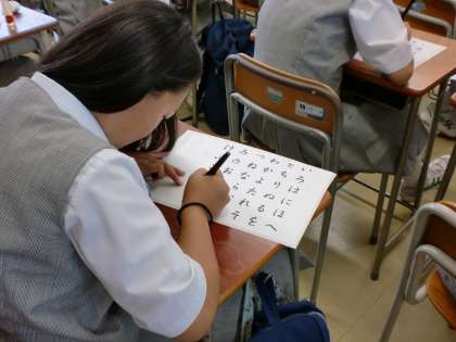 筆ペンを使って書写の練習をしました。 筆ペンを初めて使う生徒がほとんどです。