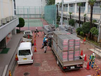 校庭改修・格技室天井改修 公開日 2015/07/08 更新日 2015/07/08 学校日記 耐震化を強めるため格技室の天井改修が始まりました。 格技室の中に櫓を組み、工事を進めます。 校庭改修では、重機が入り砂場の移動とビオトープ周りの 平面化を行っています。 いいね(0)