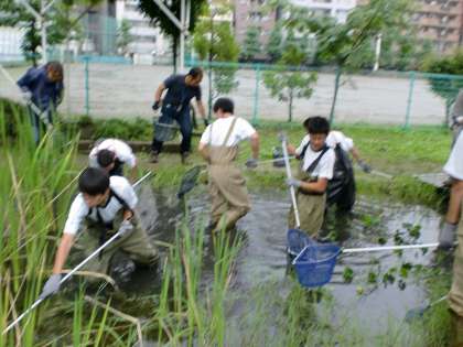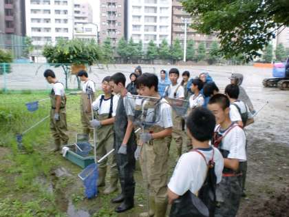 雨のレスキュー 公開日 2015/07/09 更新日 2015/07/09 学校日記 ビオトープの生き物レスキューを雨の中行いました。 ビオトープには貴重な多摩川産のメダカがいます。 今、多摩川にいるメダカは他の地域のメダカを 放流したもので、三宿のメダカはとても貴重なメダカ だそうです。 いいね(0)
