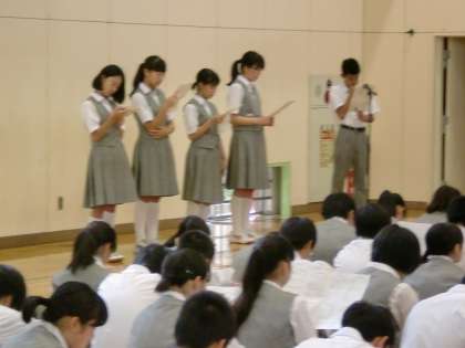 7月13日(月)本日は、生徒会朝会があります。先週の専門員会→代表委員会を経て検討した内容を生徒会役員会、各委員会委員長から全校生徒に発表します。
