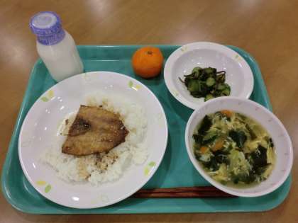 給食ではうなぎは値段的に厳しいので秋刀魚で楽しんでもらいました。